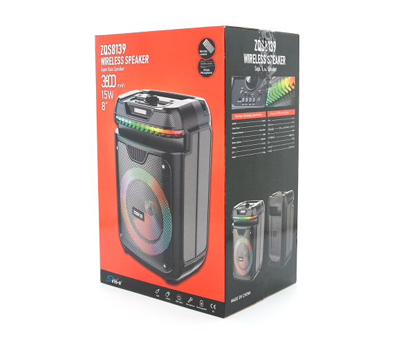 Акустична система з підсвічуванням ZQS8139, 15W, вбудований акум 3600mAh, живлення від USB кабелю, Black, Box