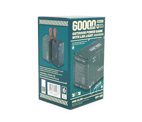 Power Bank Remax RPP-609 60000mAh, PD 20W+QC 22.5W, Gray, 1.275kg