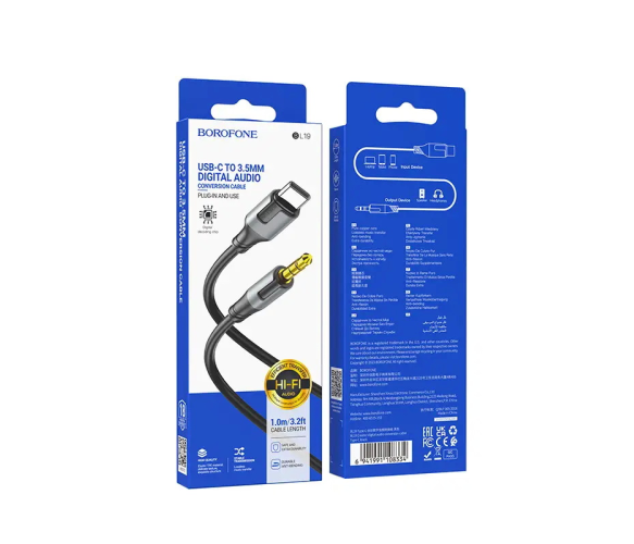 Кабель Borofone BL19 DC3.5 (тато) =>Type-C (тато), круглий, 1м, Black, Box