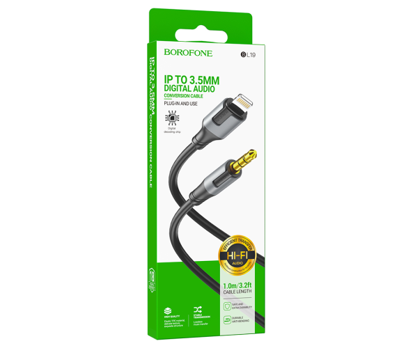 Кабель Borofone BL19 DC3.5 (тато) => Lighting (тато), круглий, 1м, Black, Box