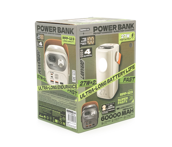 Power Bank Remax RPP-123 60000mAh, PD 27W+QC 22.5W, Gray, 1.454kg