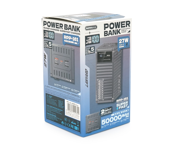Power Bank Remax RPP-161 50000mAh, PD 27W+QC 22.5W, Gray, 1.054kg