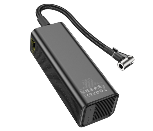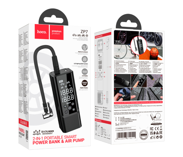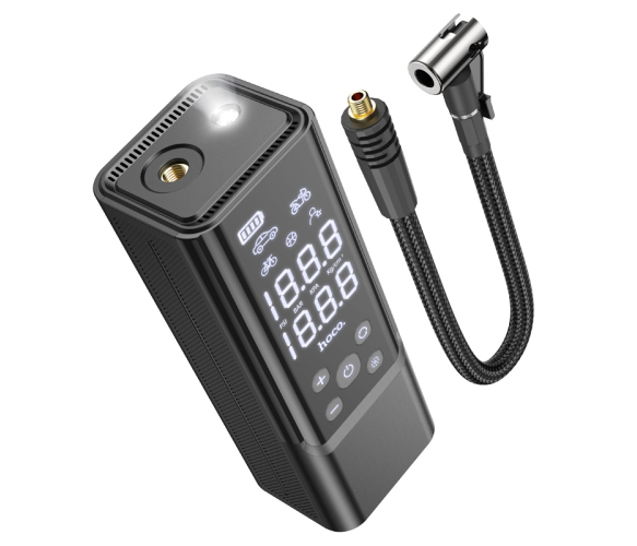 Портативний повітряний насос HOCO ZP7, до 10 атм, вбудований акумулятор 5000mAh, ліхтарик, Black, Box