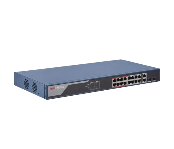 16 портів керований POE комутатор Hikvision DS-3E1318P-EI(B) , 16x (100Мбіт/с)PoE + 2xBase-T(1000Мбіт/с) +2xSFP(1000Мбіт/с)
