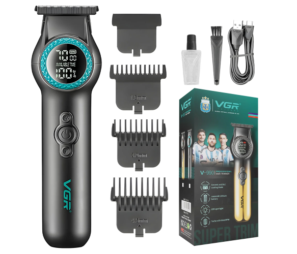 Тример VGR V-990, 3 насадки, керамічне лезо, TURBO режим, регулювання потужності 7000-8000 RPM, LED display, Box