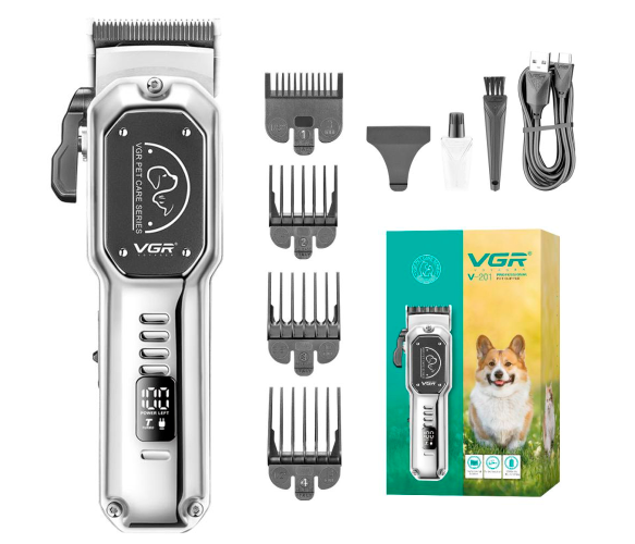Акумуляторна машинка для стрижки тварин VGR V-201, 4 насадки, LED display, Box