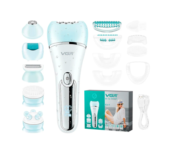 Епілятор VGR 6 в 1 V-733 BLUE, 12 насадок, IPX7, LED display, Box