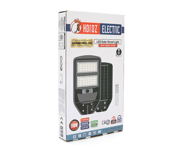 Вуличний ліхтар HOROZ GRAND PRO-100 на сонячній батареї, 100W, 1150lm, 6400K, Box