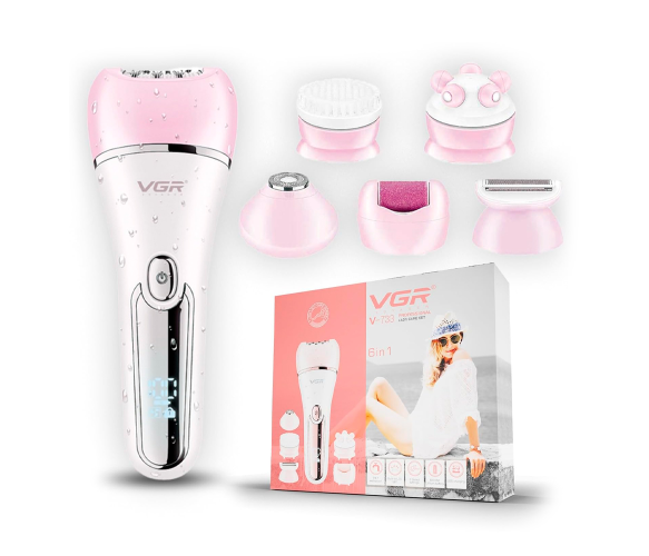 Епілятор VGR 6 в 1 V-733 PINK, 12 насадок, IPX7, LED display, Box