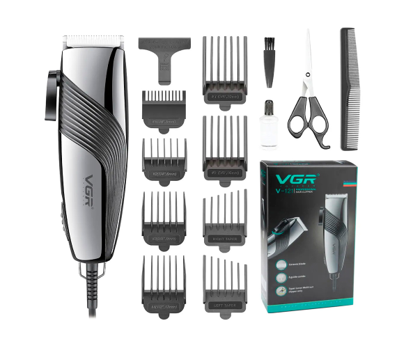 Тример VGR V-121, Professional, 8 насадок, ножиці + гребінець, від мережі 220В, Box