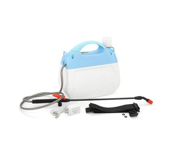 Обприскувач оснащений електричним насосом, який забезпечує рівномірне подання рідини без необхідності ручного накачування. Працює від вбудованого акумулятора ємністю 2600 мА·год і заряджається через кабель USB. Легкий корпус і ремінь плеча роблять роботу з пристроєм комфортною навіть при тривалому використанні.