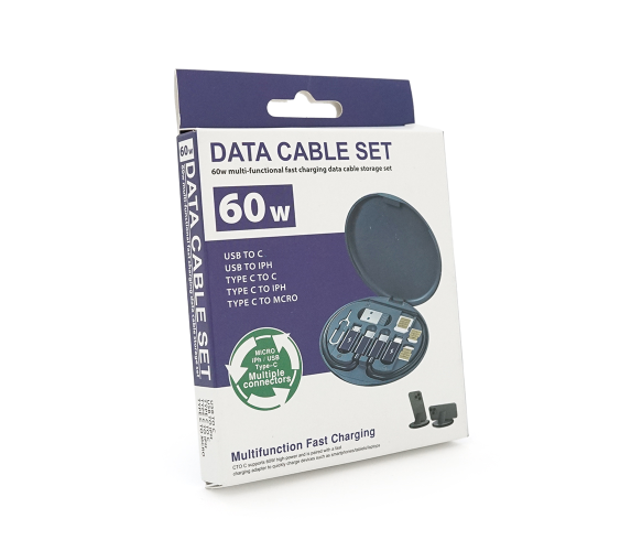 Компактний універсальний набір для заряджання та синхронізації різних пристроїв. Включає кабель Type-C — Type-C та три перехідники для підключення до різних портів. Ідеальне рішення для користувачів, яким потрібна мобільність та сумісність із кількома типами роз'ємів.