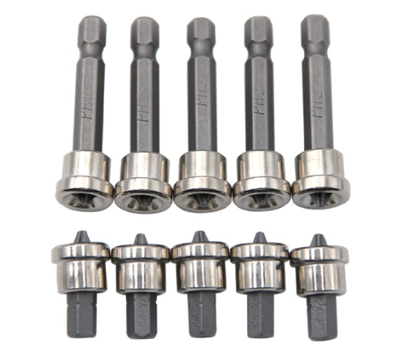 Цей набір біт призначений для роботи з кріпленням під хрестову викрутку (тип PH-2). Завдяки магнітному наконечнику та стопорному механізму біти надійно утримують шурупи та гвинти, запобігаючи їх випаданню під час роботи. Набір включає біти різної довжини для зручності різних завдань.