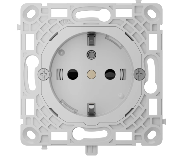 Outlet (basic) [type F] - це стандартна вбудована розетка, яку не можна додати до системи Ajax або керувати нею через застосунок. Вона має дизайн і кольори, ідентичні до розумних розеток і вимикачів Ajax, що дає змогу безперешкодно встановлювати їх поруч в одній рамці.
