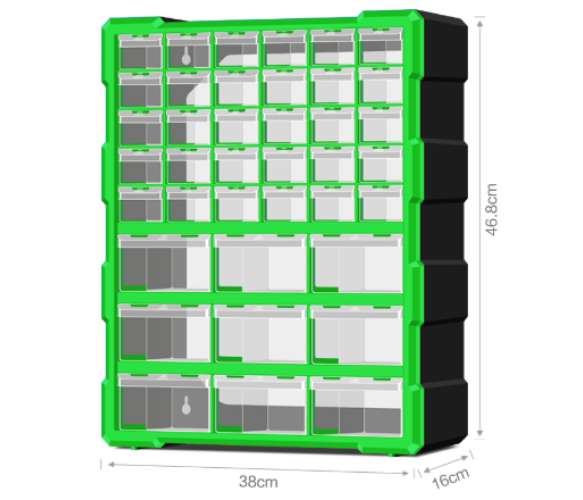 Скринька для зберігання деталей 39 осередків 46,8*38*16cм, осередки 2х-типів 15,3*5,4*3,6см та 15,3*11,2*6см