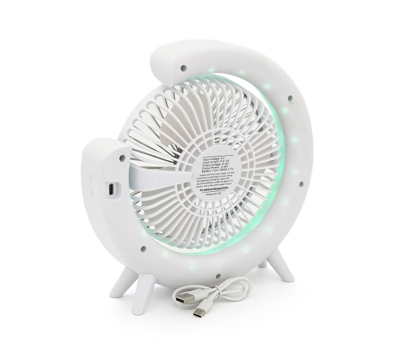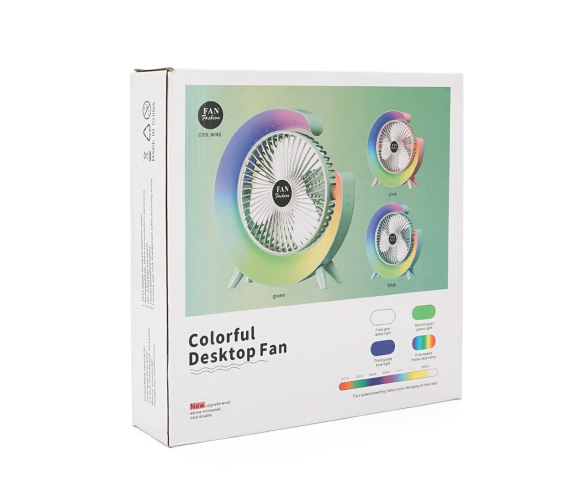 Портативний настільний вентилятор YT-1713, R-160mm, 3 режими швидкості+5 режимів підсвічування, вбудований акумулятор, Mix Color, Box