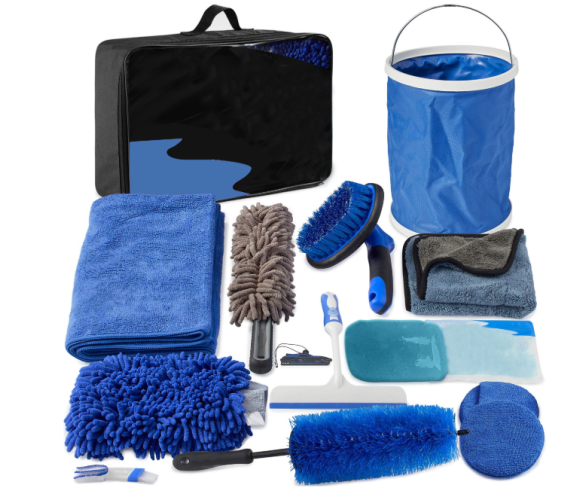 Набір для догляду за автомобілем, 12 предметів (рукавички, губка, 2- кола д/п, 2-щітки, 2-мікрофібра, 2-скребки, відро. Чохол)