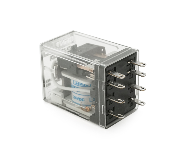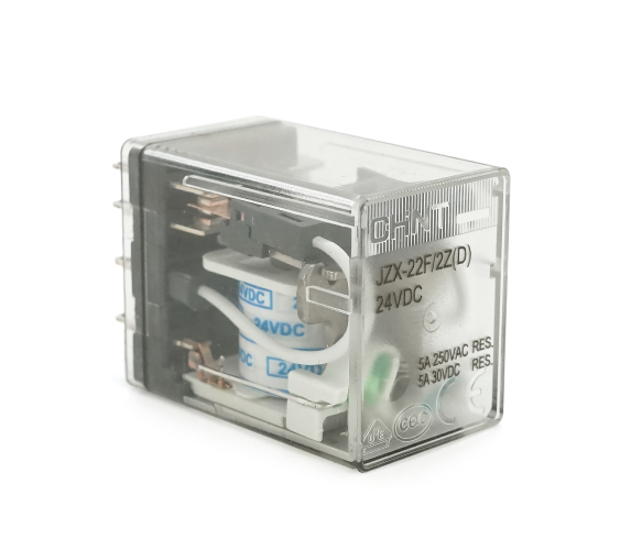 Реле електромагнітне CHINT JZX-22F(D)/2Z, DC24V, контактна група 2CO+2NO, (0,9~1,2) Вт, номінальний ток 5А, катушка 640×(1±10%)Ом, 27,5*21,5*35,5мм