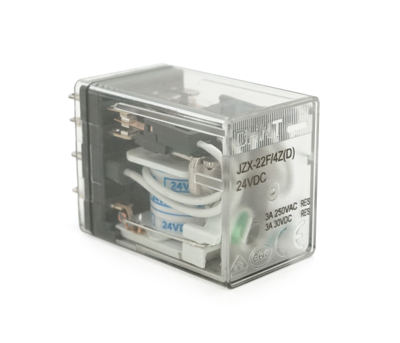 Реле електромагнітне CHINT JZX-22F(D)/4Z, DC24V, контактна група 4CO+4NO, (0,9~1,2) Вт, номінальний ток 3А, катушка 640×(1±10%)Ом, 27,5*21,5*35,5мм