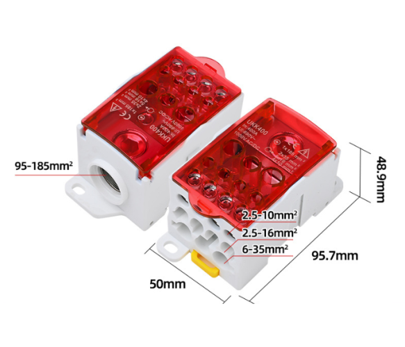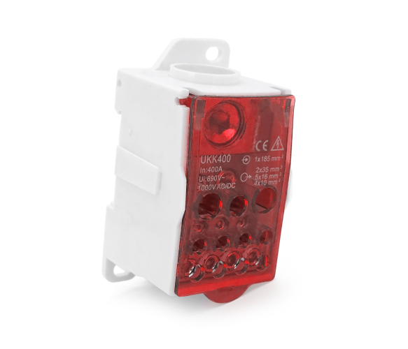 Паралельний розгалужувач-сплиттер проводів UKK400 – це професійне та надійне рішення для безпечного та організованого розподілу потужного електричного сигналу. Пристрій призначений для ефективного поділу одного вхідного силового кабелю великого перерізу на кілька незалежних ліній з меншим перерізом. Ідеально підходить для монтажу в електрощитах, розподільних пристроях, телекомунікаційних шафах та силових складаннях.