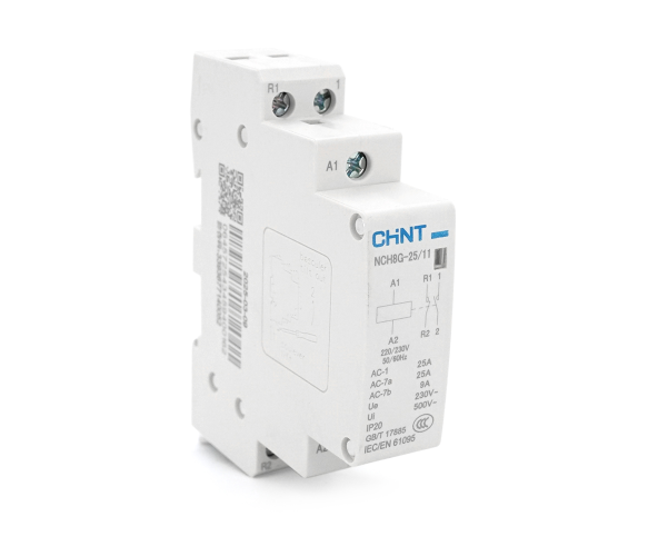 Універсальний модульний контактор для комутації силових кіл змінного струму. Пристрій призначений для дистанційного керування навантаженням за допомогою стандартної напруги 220 В. Монтаж на DIN-рейку забезпечує просту установку у розподільні щити та шафи автоматизації.