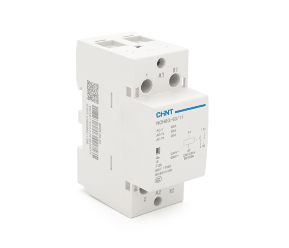 Універсальний модульний контактор для керування потужними силовими ланцюгами змінного струму. Пристрій призначений для дистанційного комутування навантажень з використанням стандартної напруги керування 220 В. Монтаж на DIN-рейку забезпечує легку інтеграцію у розподільні пристрої та шафи автоматизації.