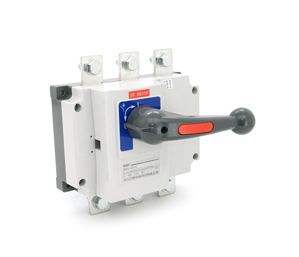 Ручний вимикач-роз'єднувач CHINT NH40-400/3P є триполюсним комутаційним апаратом з ручним керуванням, призначений для включення, відключення та перемикання електричних ланцюгів під навантаженням. Пристрій розрахований на номінальну напругу 380V та струмове навантаження до 400A. Модель оснащена стандартною рукояткою для зручного керування та забезпечує видиму розривну відстань для безпечного проведення робіт.