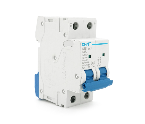 Професійний апарат захисту для кіл постійного струму високої потужності. Двополюсний автоматичний вимикач серії NB1-63DC призначений для надійного захисту електричних кіл постійного струму від струмів перевантаження та короткого замикання. Пристрій призначений для монтажу на стандартну DIN-рейку у розподільних щитах та шафах.