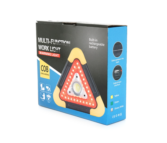 Знак аварійної зупинки SUITU ST-1101S-S - це автономний світлосигнальний пристрій нового покоління для забезпечення безпеки на дорозі. Модель оснащена вбудованим акумулятором ємністю 2200 мА·ч з подвійною системою заряджання: від сонячної панелі та через порт MiniUSB. Трикутна конструкція розміром 18.5×18.5×18.5 см поєднує 39 червоних світлодіодів та яскравий COB-ліхтар із п'ятьма режимами роботи.
