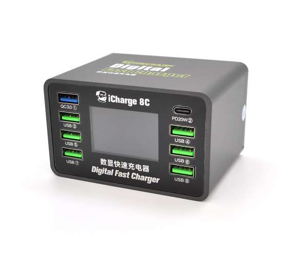 Зарядна станція MECHANIC iCharge 8C є компактним і високоефективним рішенням для одночасного живлення декількох мобільних пристроїв. Пристрій оснащений 6 портами USB-A та 2 інтелектуальними портами з підтримкою сучасних технологій швидкого заряджання, що робить його ідеальним вибором для дому, офісу або подорожей. Вбудований цифровий дисплей дозволяє контролювати процес заряджання в режимі реального часу.