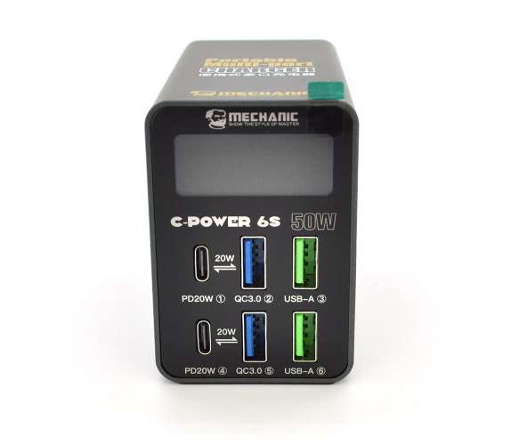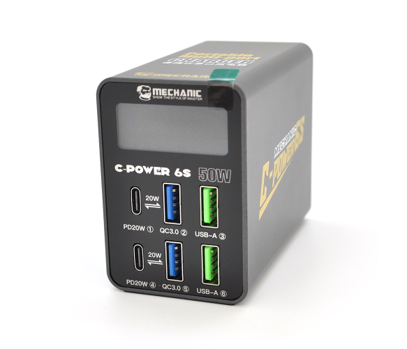 Зарядна станція MECHANIC C-Power 6S – це сучасний та компактний пристрій, призначений для швидкої та безпечної зарядки кількох гаджетів одночасно. Оснащена цифровим дисплеєм для контролю параметрів, двома портами USB-A та двома портами з підтримкою QC3.0 та PD3.1. Станція забезпечує оптимальну потужність кожного підключеного пристрою, автоматично підбираючи потрібний режим зарядки.