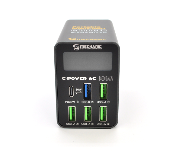 Зарядна станція MECHANIC C-Power 6C являє собою компактний та багатофункціональний пристрій для одночасного живлення та заряджання різних електронних гаджетів. Оснащена шістьма портами, включаючи чотири стандартні USB-A, один порт QC3.0 та один порт PD3.1, що забезпечує сумісність з більшістю сучасних пристроїв. Вбудований цифровий дисплей дозволяє відстежувати параметри заряджання в реальному часі. Компактні розміри та продумана конструкція роблять цю станцію ідеальним рішенням для дому, офісу чи подорожей.