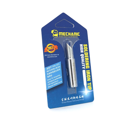 Жало MECHANIC BW 900M-T-K – професійний змінний наконечник для паяльника, виготовлений із високоякісної міді з гальванічним покриттям. Завдяки широкому кутовому перу та оптимальним розмірам (внутрішній діаметр 4 мм, зовнішній 6.3 мм) забезпечує ефективну теплопередачу та зручність при паянні великих з'єднань. Гальванічне покриття значно збільшує термін служби жала, запобігаючи корозії та зносу.