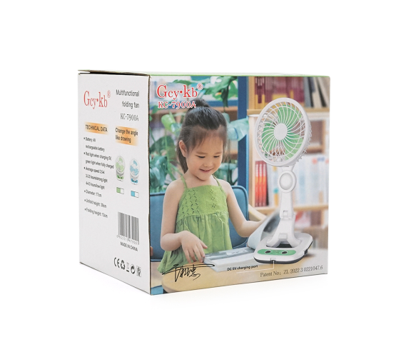 Портативний настільний вентилятор KC-7900A, R*160мм, 2 режими, ліхтар, живлення від акумулятора 18650 (в комплекті тільки 1шт), USB кабель, Box