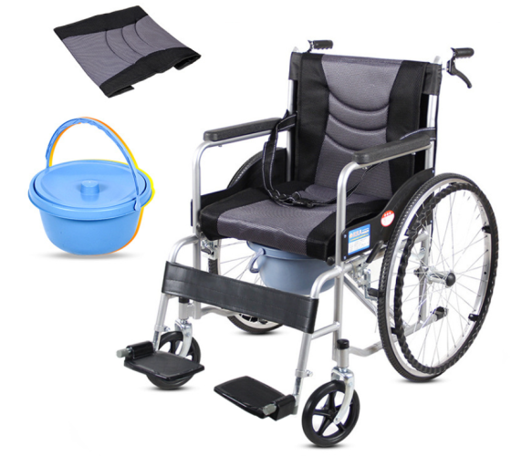 Інвалідний візок складаний, знімна і миється подвійна подушка для сидіння, знімний горщик, нековзні поручні, 89*68*100см, 18kg