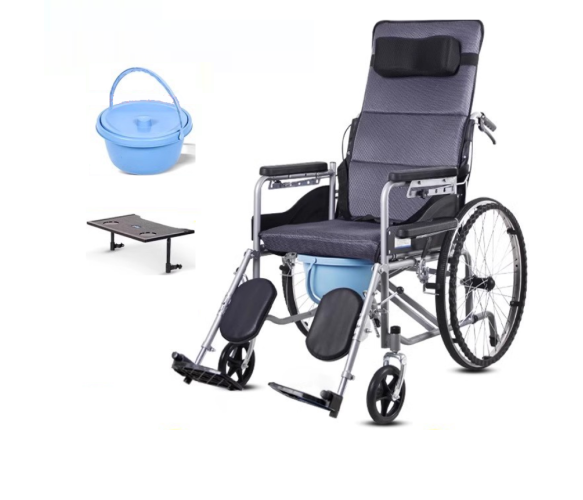 Інвалідний візок складаний, регульований нахил, знімний горщик, знімний столик, нековзні поручні, 89*68*100см