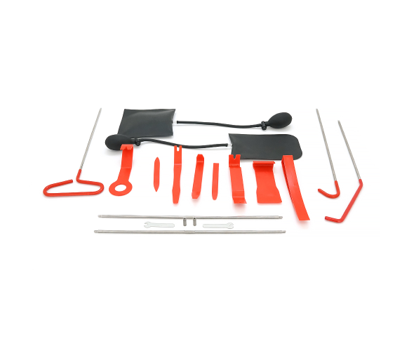 Набір інструментів для ремонту салону автомобіля – це професійний комплект із 15 спеціалізованих пристроїв для дбайливого демонтажу та встановлення елементів інтер'єру транспортного засобу. Інструменти розроблені з урахуванням особливостей конструкції сучасних автомобілів та дозволяють виконувати роботи без пошкодження крихких пластикових деталей та кріпильних елементів.