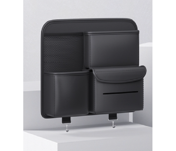 Автомобільний органайзер CABULE на передні сидіння, 35x28х7.5см, кріплення до сидінь ременями, 4 відділення, PV-шкіра, чорний