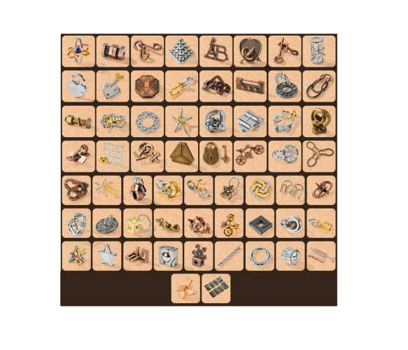 • Комплектація: 68 металевих головоломок різних форм та рівнів складності