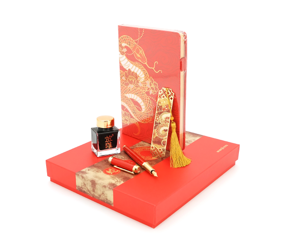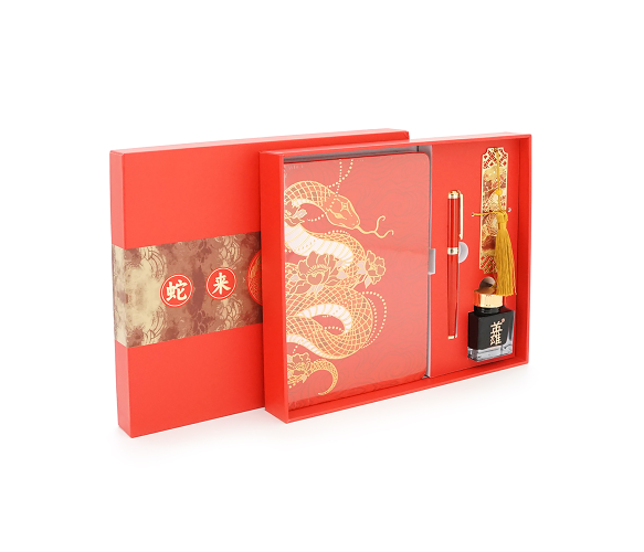 Подарунковий набір HERO Snake - це ексклюзивний набір для письма, що поєднує традиції каліграфії та сучасний дизайн. Набір включає перову ручку з іридієвим пером, класичний блокнот, декоративну закладку, чорнильницю та аксесуари, розміщені в елегантній подарунковій коробці розміром 265×230×41 мм. Виконаний у благородному червоному кольорі, комплект поєднує функціональність та естетику, являючи собою закінчене рішення для цінителів якісного письмового приладдя.