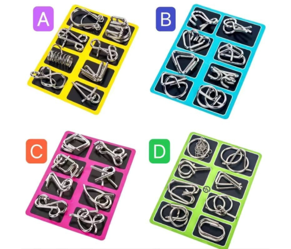 Металевий пазл із 32 предметів «Набір головоломок» — це комплексне рішення для розвитку логічного та просторового мислення. Набір складається з чотирьох тематичних груп по вісім взаємопов'язаних головоломок у кожній, виготовлених із нержавіючої сталі методом точного лазерного різання. Кожна група є унікальним типом логічних завдань: від класичних роз'ємних конструкцій до сучасних просторових моделей.