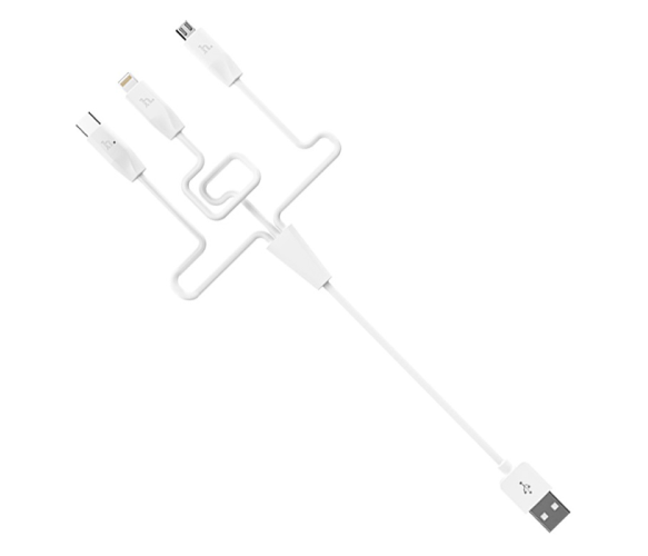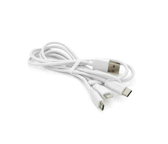 Універсальний зарядний кабель 3-в-1 для одночасної роботи із пристроями різних стандартів. Дозволяє заряджати та синхронізувати гаджети з різними типами роз'ємів без необхідності використання кількох кабелів.