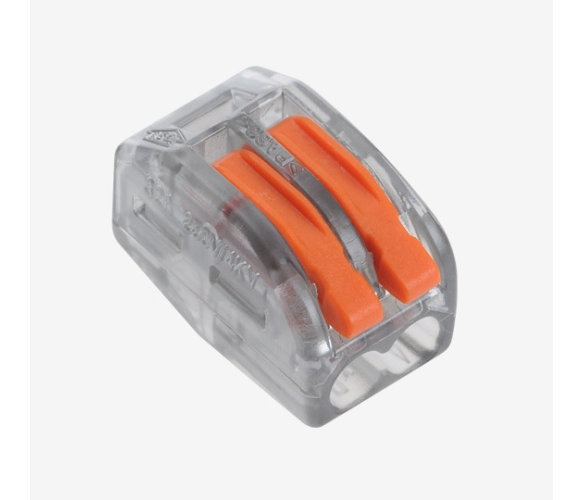 Клема з натискними затискачами 2-провідна WAGO K222-412T для розподільних коробок, 2-pin, прозоро-жовтогаряча, упаковка 50 шт, ціна за упаковку