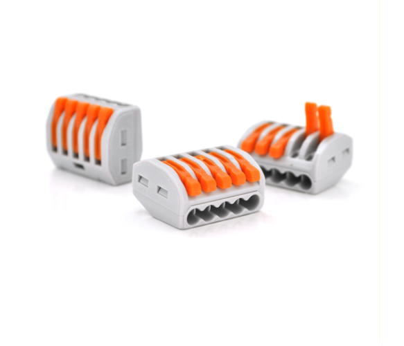 Клема з натискними затискачами 5-провідна WAGO K222-415 для розподільних коробок, 5-pin, сіро-жовтогаряча, упаковка 15 шт, ціна за упаковку
