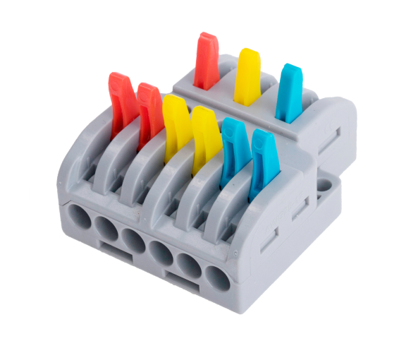 Клемна колодка LT-633 призначена для використання у розподільчих коробках. Вона оснащена натискними затискачами для зручного та надійного підключення дротів. Колодка здатна працювати з напругою до 450V та струмом до 32A. Її сірого кольору, що полегшує ідентифікацію під час проведення робіт.