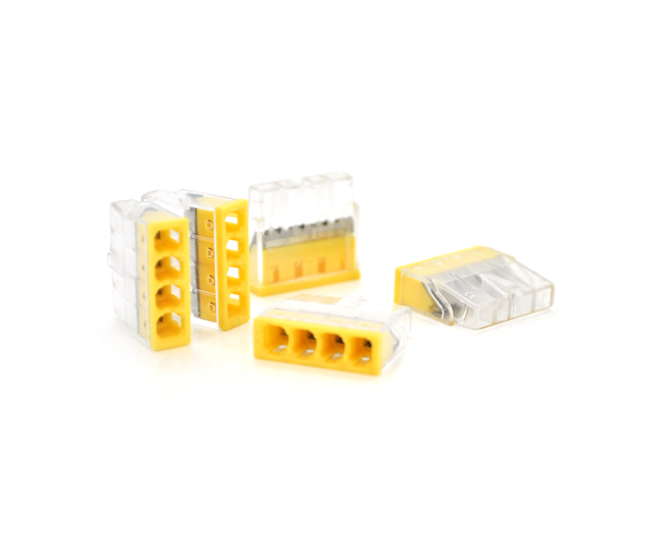 Характеристики:- Тип: самозатискна 4-провідна клема- Модель: WAGO К773-204- Кількість контактних пінів: 4- Колір: прозоро-жовтий