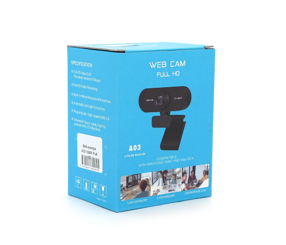 Вебкамера з гарнітурою A03, 1080p, пласт. корпус, Black, Q100