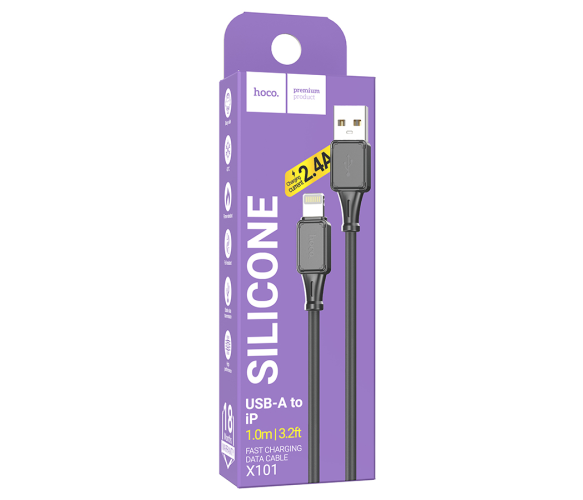 Кабель Hoco X101 Silicone, Lightning-USB, 2.4А, довжина 1м, Black, BOX
