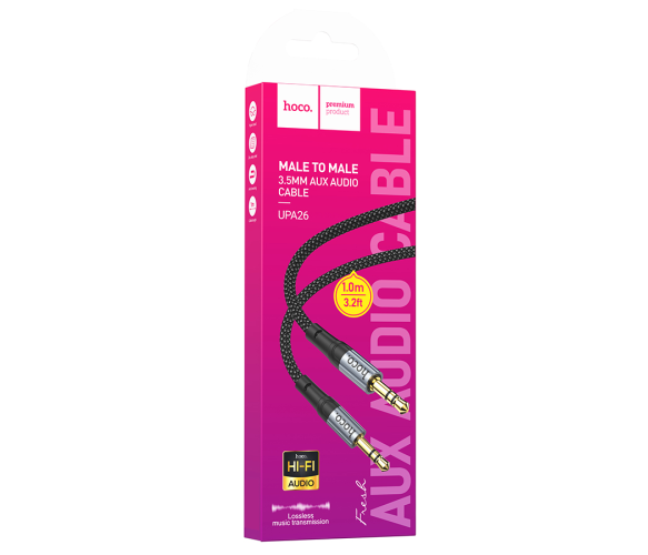 Кабель HOCO UPA26 DC3.5 тато-тато 1.0м, круглий в обплетенні, Black, Box