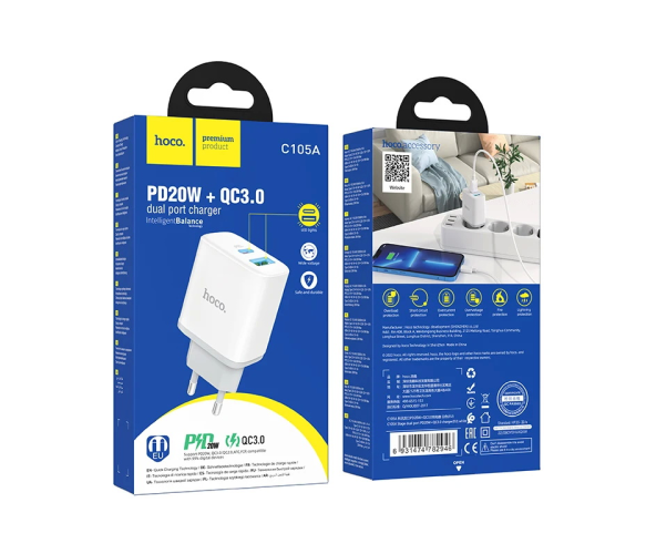 Компактное и мощное сетевое зарядное устройство с двумя портами для быстрой зарядки мобильных устройств. Поддерживает современные технологии Power Delivery и Quick Charge 3.0, обеспечивая оптимальную скорость зарядки смартфонов, планшетов и других гаджетов.